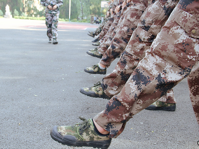 伴着国歌声,阅兵大会拉开了帷幕。经过近十天的军事训练,参训学生们斗志昂扬,用自己的方式展现了军人的气质。他们迈着整齐的步伐依次入场,坚定的目光、飒爽的英姿,高喊着铿锵的口号坚定地走过主席台。