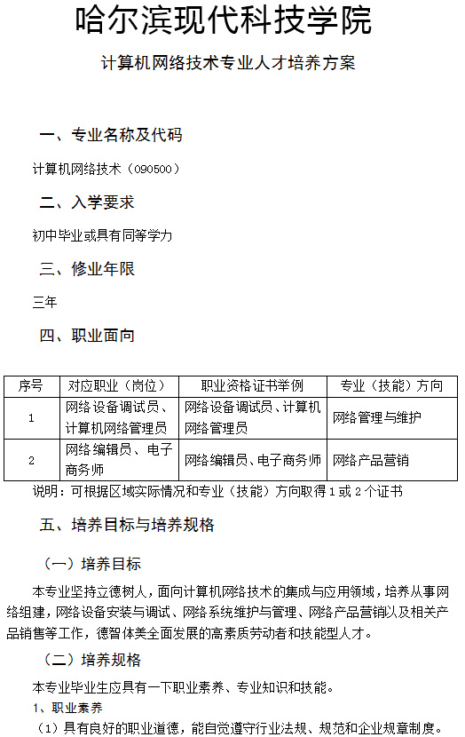 计算机网络技术专业人才培养方案